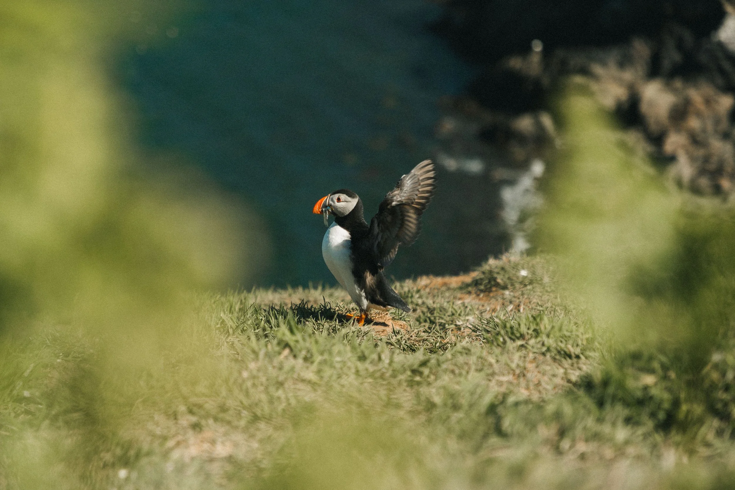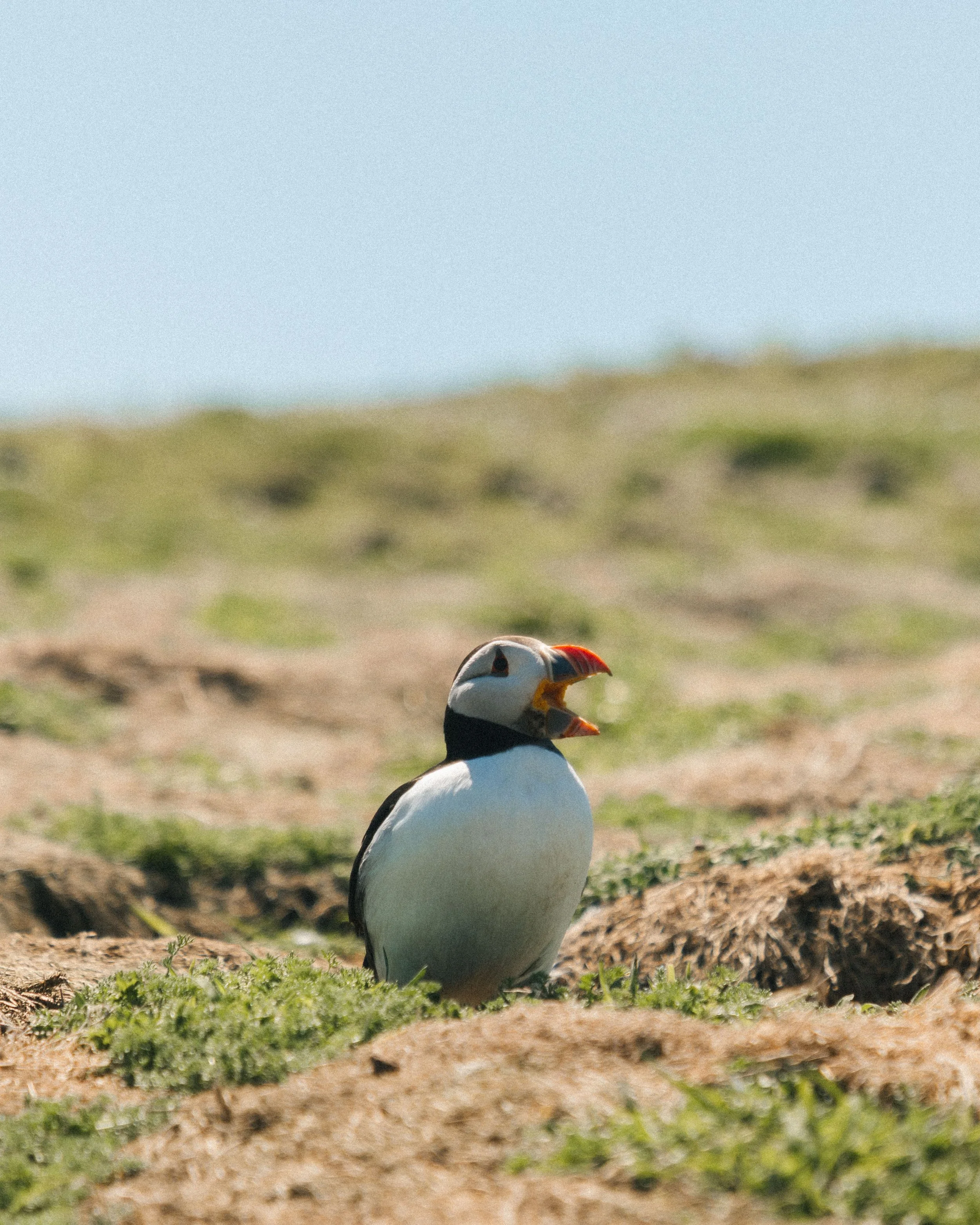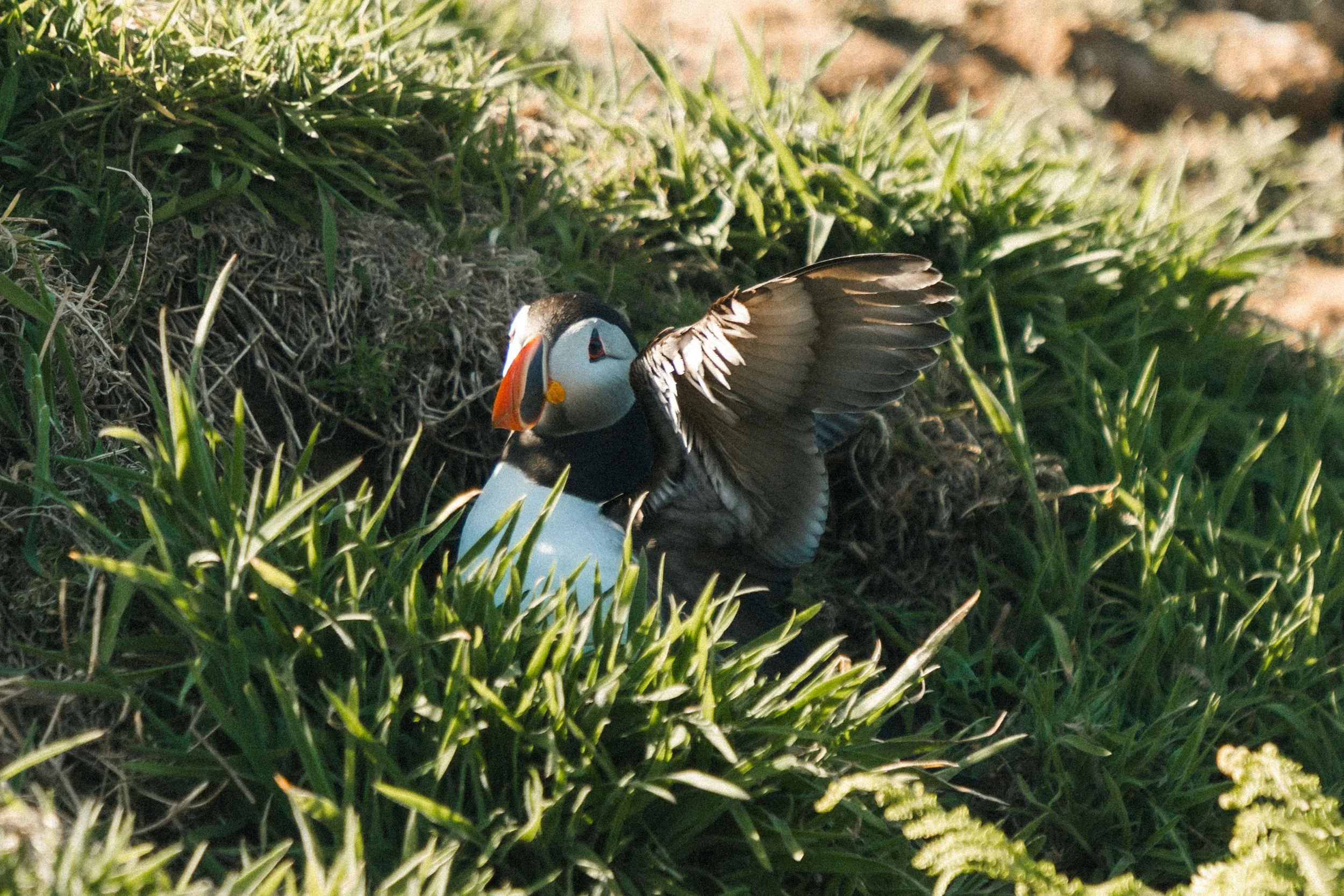 My first impression of these surprisingly small marine birds (~30cm in length), is how innocently goofy and clown-like they were; in the most endearing way. They clearly were not made for life on land, with their rough, non-strategic landings from the air, it was clear they hadn’t yet mastered the best way to hit the ground without potential for injury. I witnessed many Puffin dive bombs and head plants, but they seemed completely fine with the ‘techniques’ they had and continued to patter around the island inquisitively.